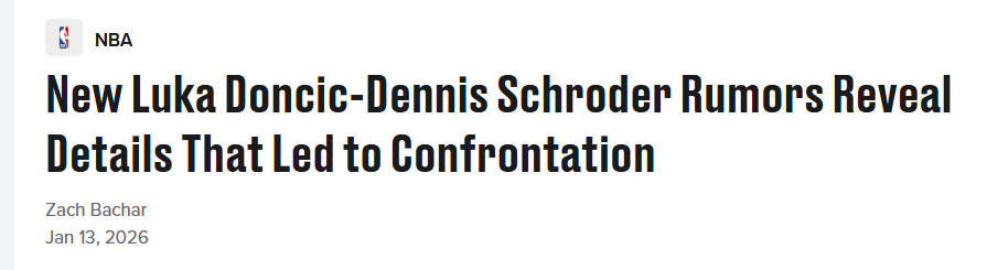 北京时间1月14日,名记Shams在节目上透露了施罗德和东契奇冲突事件的更多细节。12月29日湖人战胜国王赛后,两人发生了冲突,并导致施罗德被禁赛3场。